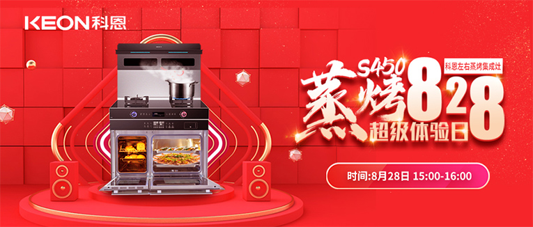 直播預告 | 828科恩S450集成灶蒸烤超級體驗日!幸福廚房升級,有TA就夠了!
