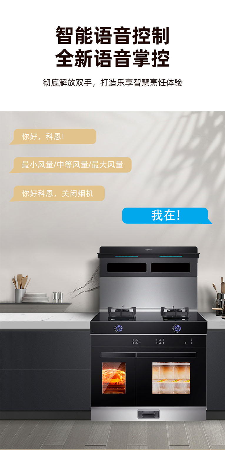 擁有愜意的廚房體驗,只靠蒸烤功能和一機多用還遠遠不夠,智能化的產品越來越受到消費者喜愛,“智能”一詞也成為打造廚房全新生態的考量依據。集成灶十大品牌、廚電行業十大品牌科恩S450左右蒸烤集成灶搭載智能語音控制,一聲科恩打開廚房新境界~