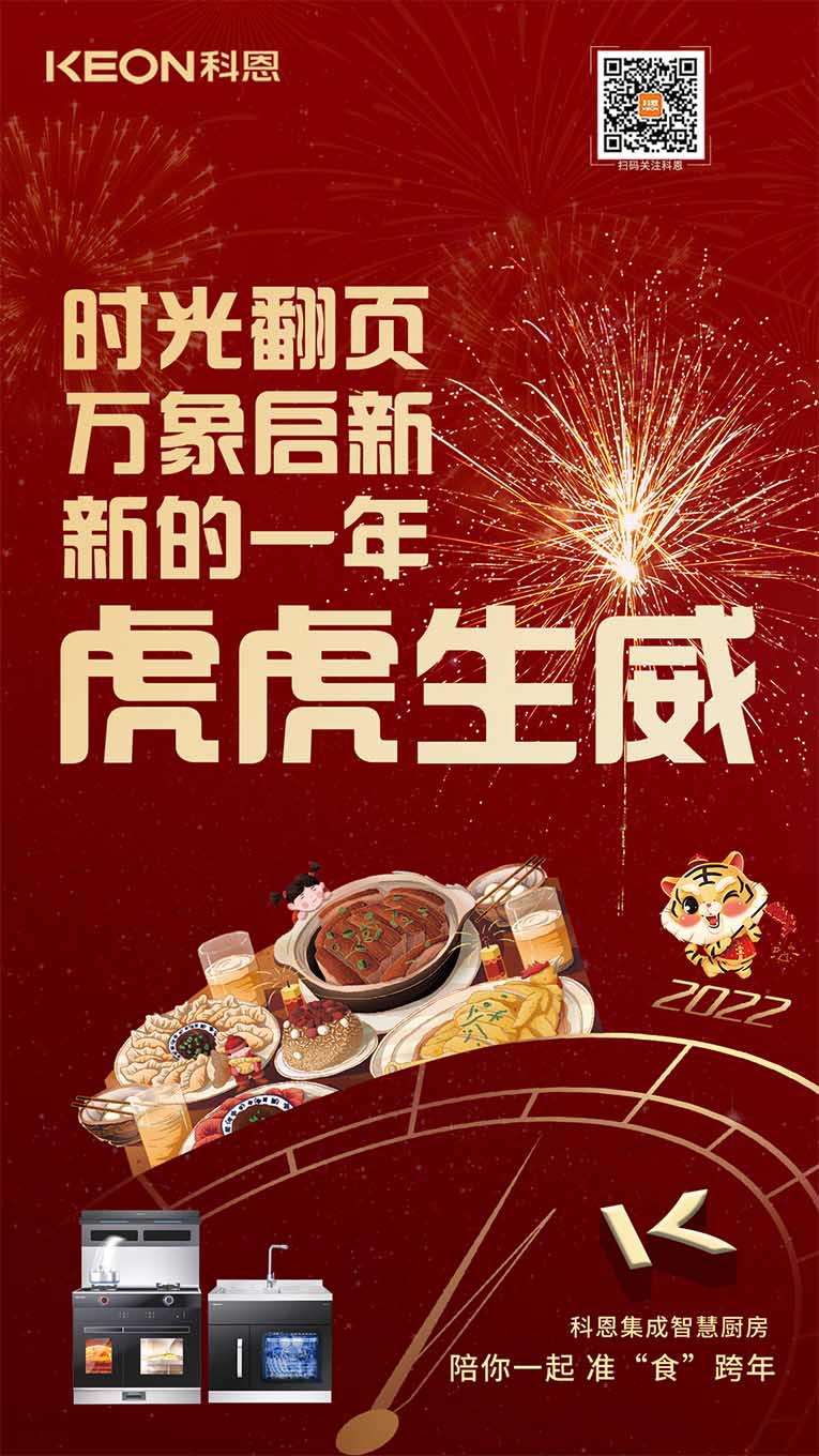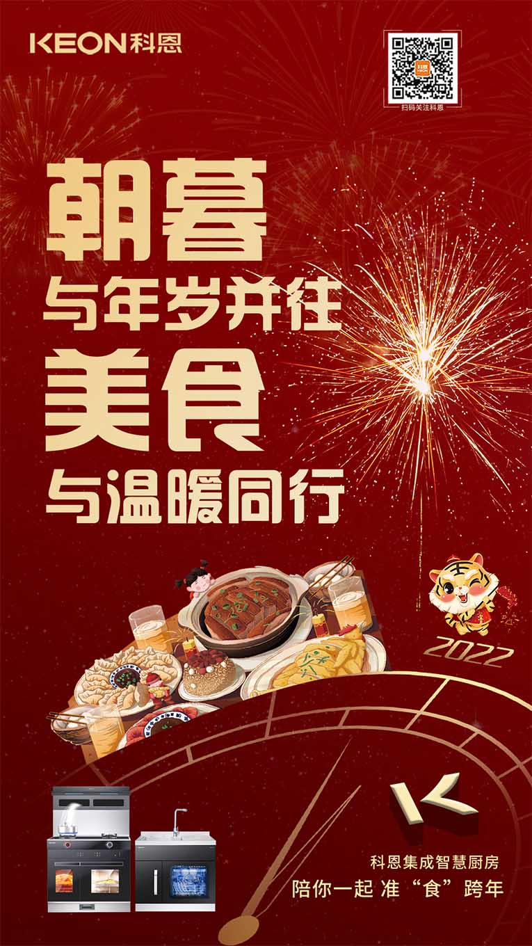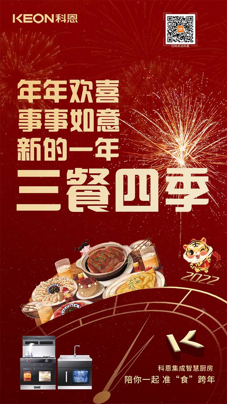 一臺集成灶十大品牌、廚電行業(yè)十大品牌科恩集成灶,輕松搞定您家的跨年大餐,吃好喝足迎接新年,科恩也在此祝賀大家新年新氣象~