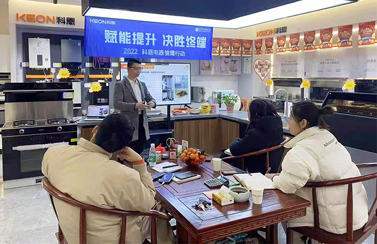 為了能更好地服務(wù)于客戶,2022年科恩集成灶雛鷹行動正式開展,雛鷹行動旨在深入一線賦能門店,以成熟的體系化方法論和實(shí)踐操作相結(jié)合的模式,手把手幫扶科恩全國門店,與終端進(jìn)行零距離接觸,為經(jīng)銷商進(jìn)行專業(yè)的導(dǎo)購、銷售、活動、實(shí)操技能指導(dǎo),全面助力提升科恩集成灶在當(dāng)?shù)氐氖袌龈偁幜Γ?