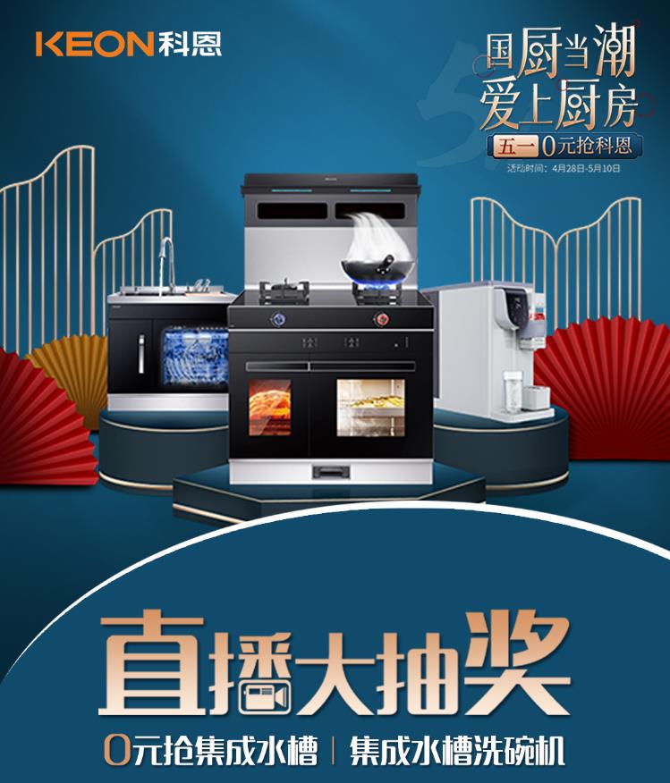 國廚當潮,愛上廚房——0元搶科恩活動正在火爆進行中,為回饋消費者,科恩電器特于5月4日晚舉行了直播大抽獎活動。