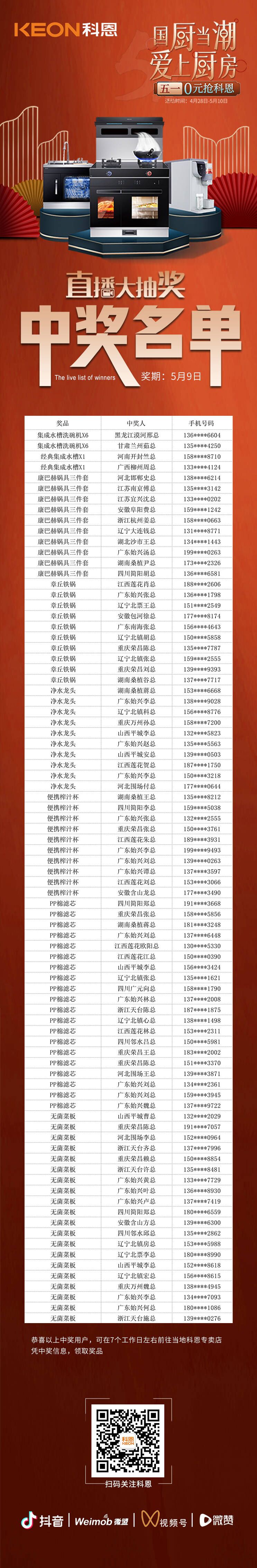 本次0元搶科恩活動已圓滿落下帷幕,接下來,科恩集成灶還將有更多活動福利、大獎等著您,敬請隨時關注科恩公眾號以及全國科恩門店,期待下次活動,不見不散!