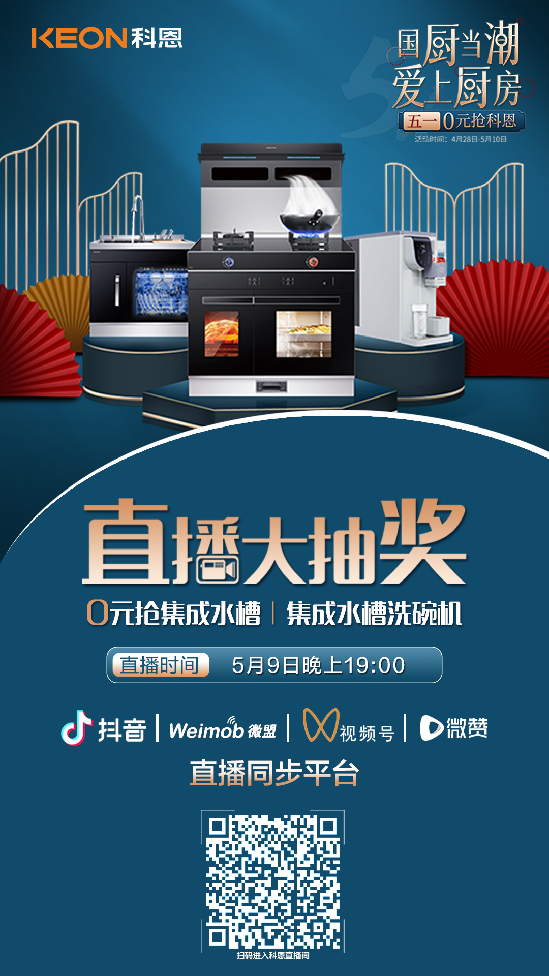 國廚當潮,愛上廚房——0元搶科恩活動正在火爆進行中,為回饋消費者,科恩電器特于5月9日晚舉行了第二輪直播大抽獎活動。在5日公布了第一輪直播大抽獎中獎名單后,小編收到了很多用戶的后臺留言,紛紛詢問第二輪大抽獎的時間以及參與方式,本次活動吸引了眾多消費者前來參與,活動精彩紛呈,直播間也熱鬧非凡,全國各地的朋友們積極參與,用指尖傳遞著國廚當潮,愛上廚房的精致廚房新理念。