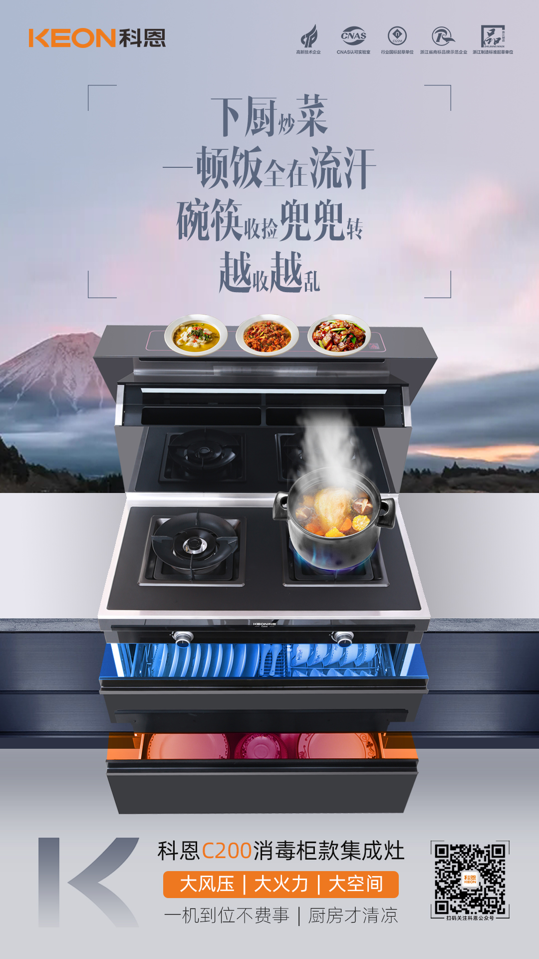 科恩C200消毒柜款集成灶,夏日廚房必備寶藏好物,實(shí)用不踩雷,分分鐘讓你愛(ài)上下廚!