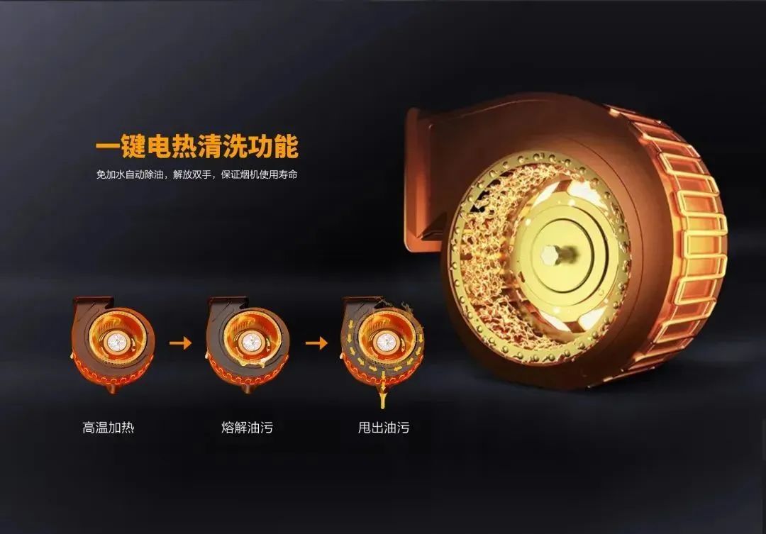 科恩免清洗煙機(jī)標(biāo)配智旋洗,高溫電加熱,有效熔化風(fēng)柜內(nèi)壁和葉輪上的部分油垢,再通過風(fēng)輪的離心力將油污甩到室外和過濾到油杯,從而完成清洗全過程,但即使這樣也無法解決風(fēng)輪長年累月因油脂油污附著負(fù)荷工作而造成的吸力下降,吸煙效果變差,清洗打理困難,甚至煙機(jī)抖動(dòng)和安全等諸多問題......