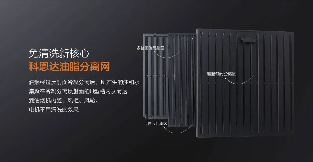 不是煙機(jī)的每一張網(wǎng)板可稱為科恩達(dá)油脂分離網(wǎng),結(jié)構(gòu)科學(xué),油脂高分離,只吸煙不吸油!