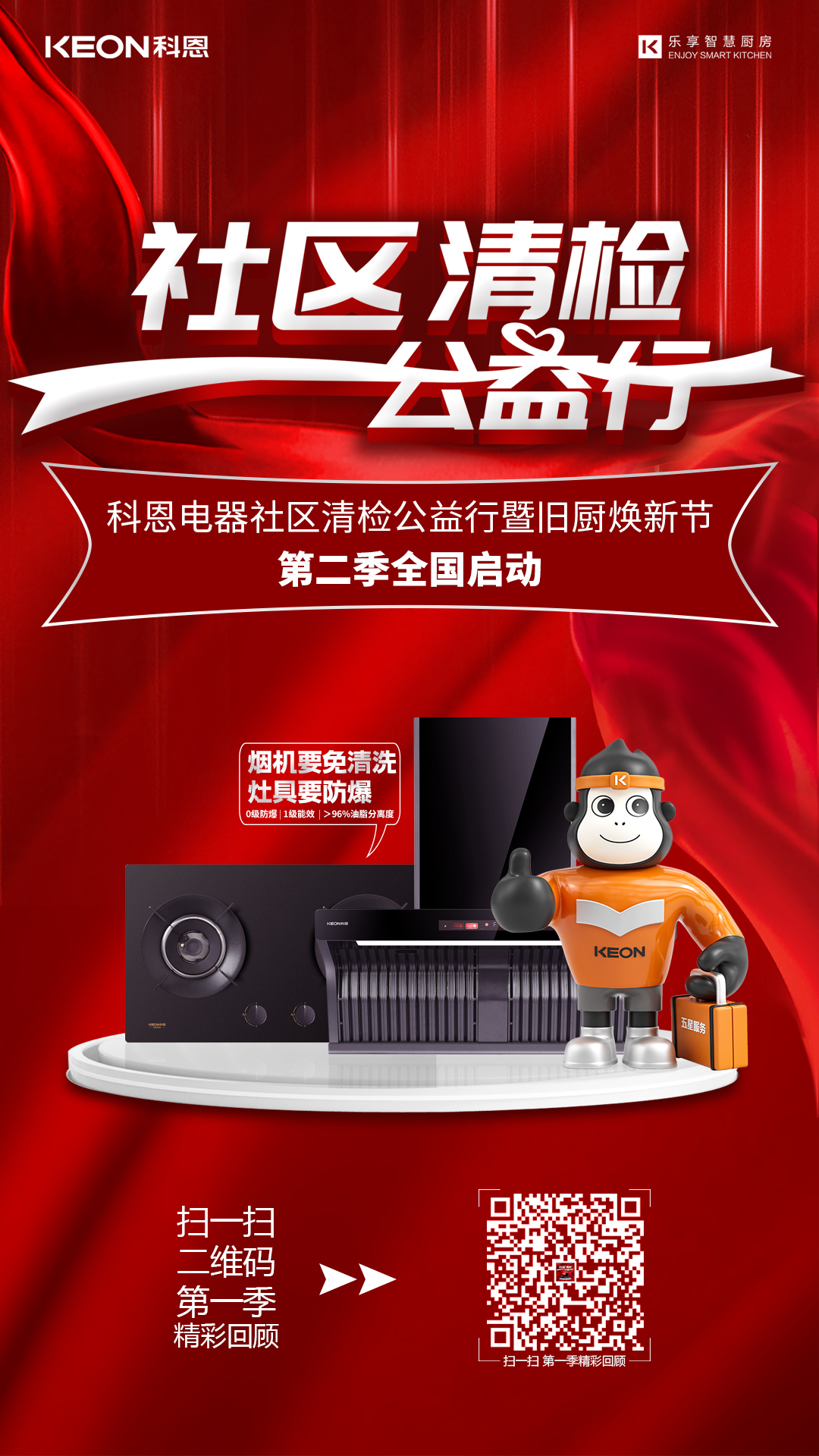 2023年,廚電行業面臨嚴酷挑戰,怎么結合當下市場發展情況撬動新增量是企業需要思考的問題??贫骶o跟國家政策,深入開展家電以舊換新政策,以“社區清檢公益行”為主題深入千家萬戶。