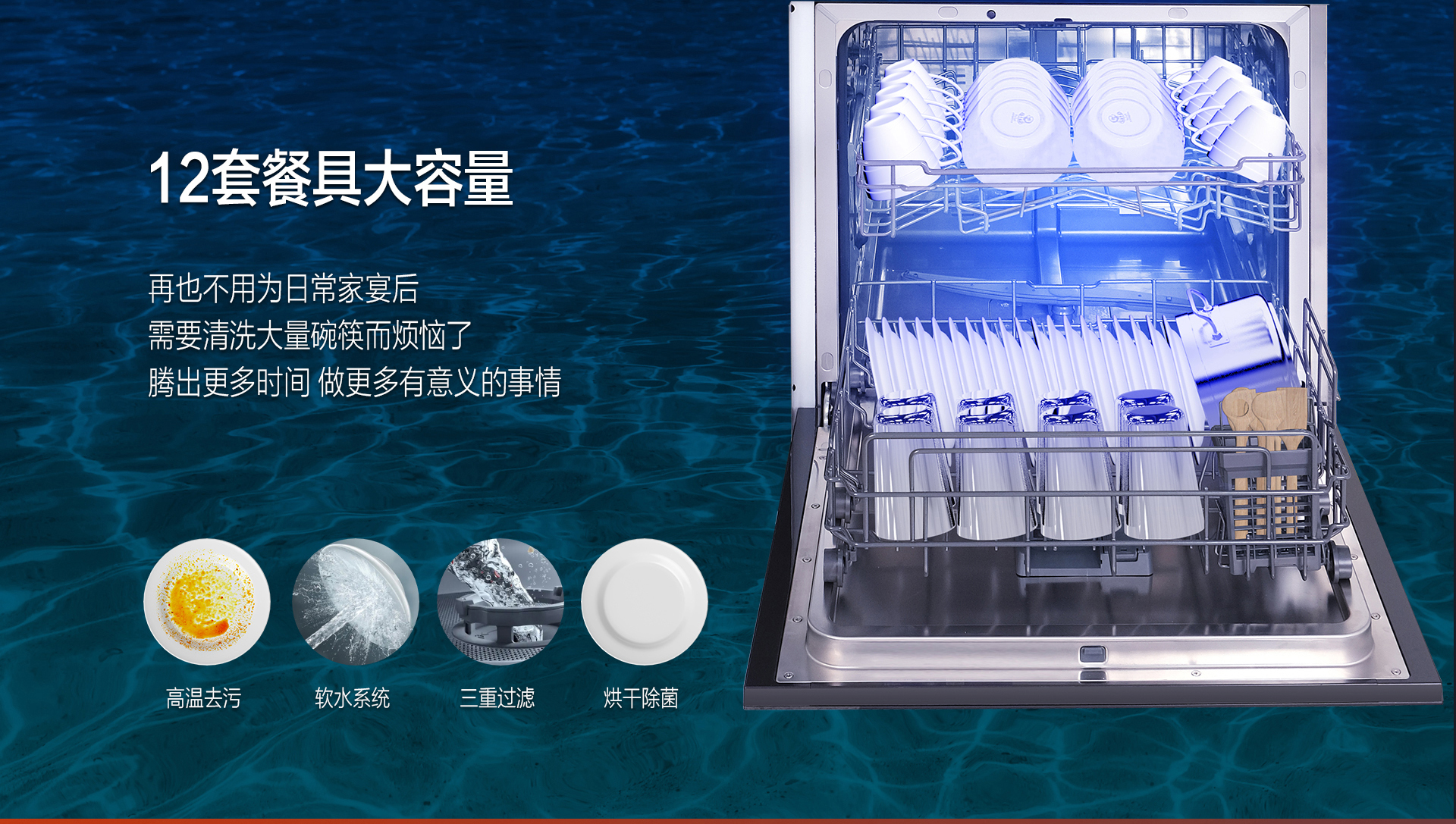 一臺(tái)頂五臺(tái):水槽、洗碗機(jī)、果蔬凈化器、消毒柜、櫥柜融為一體,1平米就足以解決廚房清洗難題。