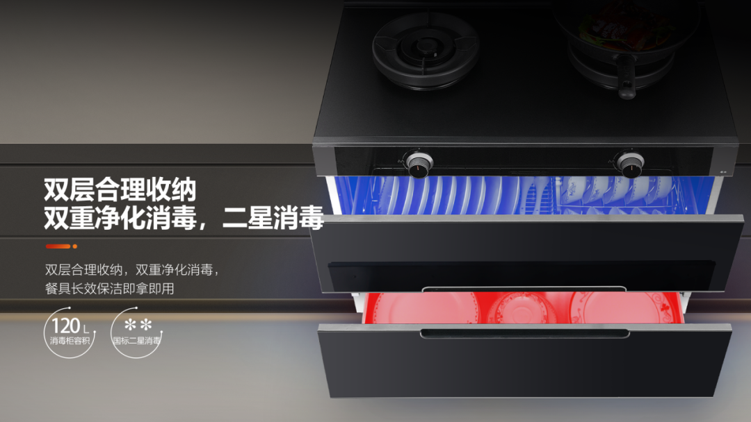 不得不說,這個時候一個家用消毒柜就十分有必要!但廚房空間有限,廚房電器頗多,著實沒有空間容納這么大的電器了。如何解決這個難題。科恩C260L消毒柜款集成灶,一臺頂多臺,且國標(biāo)二星消毒,能消殺更多細(xì)菌。