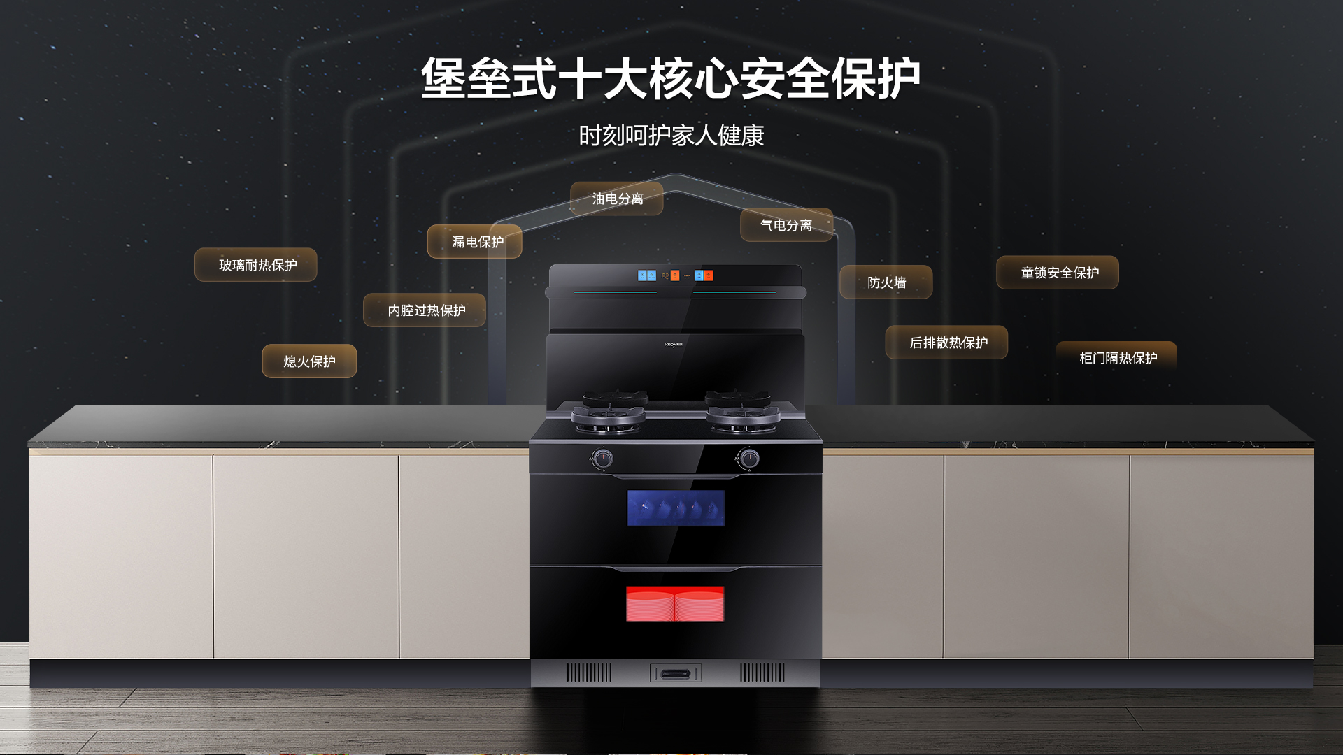 消毒柜采用臭氧+紫外線+遠(yuǎn)紅外線三重保潔防護(hù),深層殺死細(xì)菌,保障餐具清新無異味。