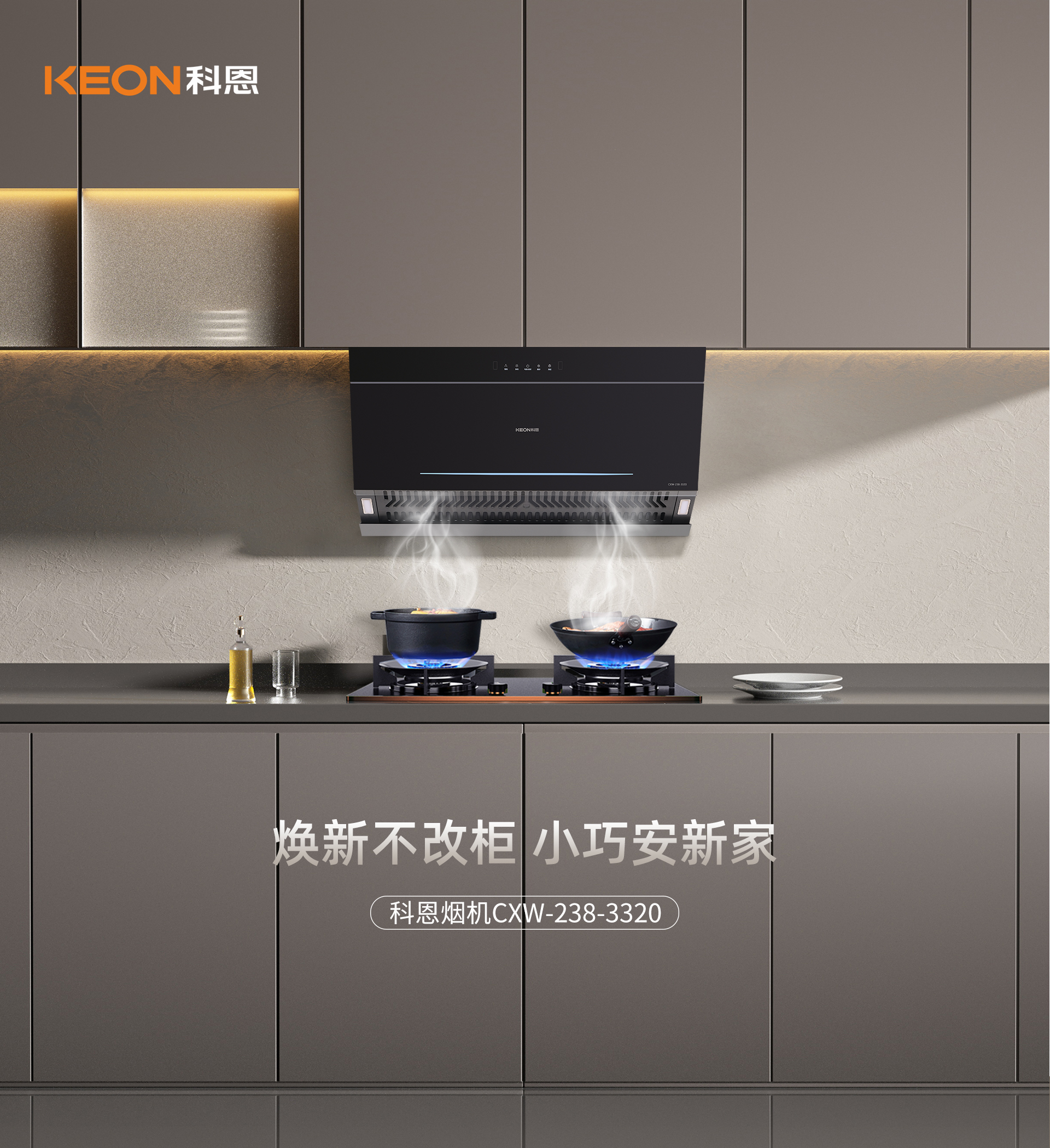對(duì)于老廚換新的家庭來(lái)說(shuō),理想的油煙機(jī)應(yīng)具備“煥新不改柜”的特性。它能夠在不改動(dòng)櫥柜的情況下順利安裝,以小巧的身形融入廚房空間,無(wú)論是新裝修還是廚房改造,都不會(huì)帶來(lái)額外的困擾與麻煩。而科恩3320煙機(jī)正具備了這樣的特點(diǎn)。
