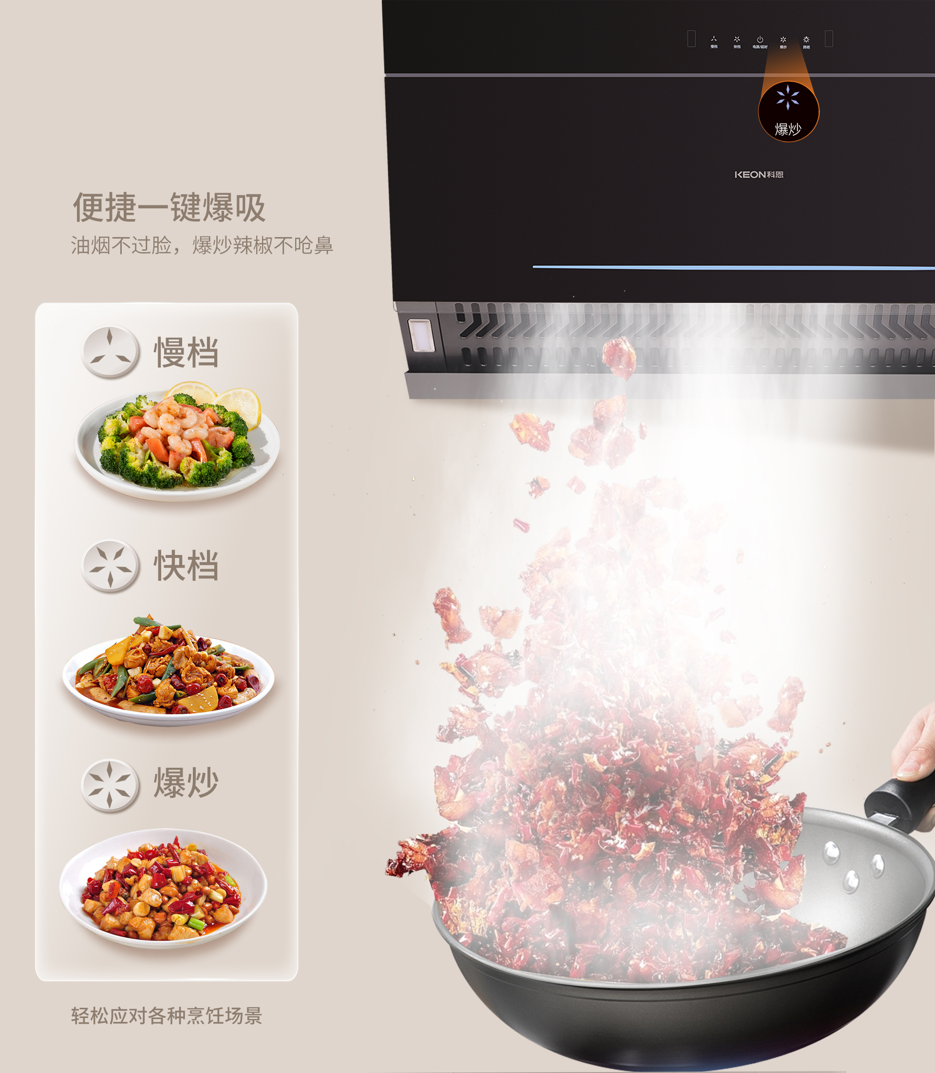 3320的吸煙功能更是重中之重。“260MM低空吸煙”技術(shù),能夠在油煙尚未升騰擴(kuò)散之時(shí),就將其精準(zhǔn)捕捉,從源頭上控制油煙的擴(kuò)散,讓廚房始終保持清新潔凈。而“895MM寬屏攏煙”則從容應(yīng)對(duì)雙灶同時(shí)炒菜的情況,寬大的攏煙屏確保油煙不會(huì)四處逃逸。具備2檔吸煙模式與爆吸模式,可根據(jù)不同的烹飪場(chǎng)景輕松切換,滿(mǎn)足多樣化的需求。“攏吸排三點(diǎn)一線(xiàn)”的設(shè)計(jì)則保證了精準(zhǔn)吸煙與暢吸直排,讓油煙的處理過(guò)程高效流暢。