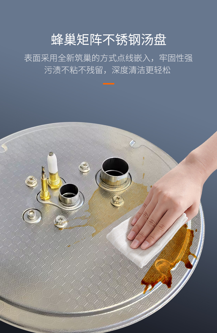 蜂巢矩陣湯盤,點線嵌入更牢固污漬不粘無殘留,深度清潔更輕松可拆卸火蓋,獨立清理無死角不銹鋼爐頭耐腐,高溫炙烤不變形搪瓷鍋架防滑落,耐用省心烹飪之后巧清理,省時省力更高效