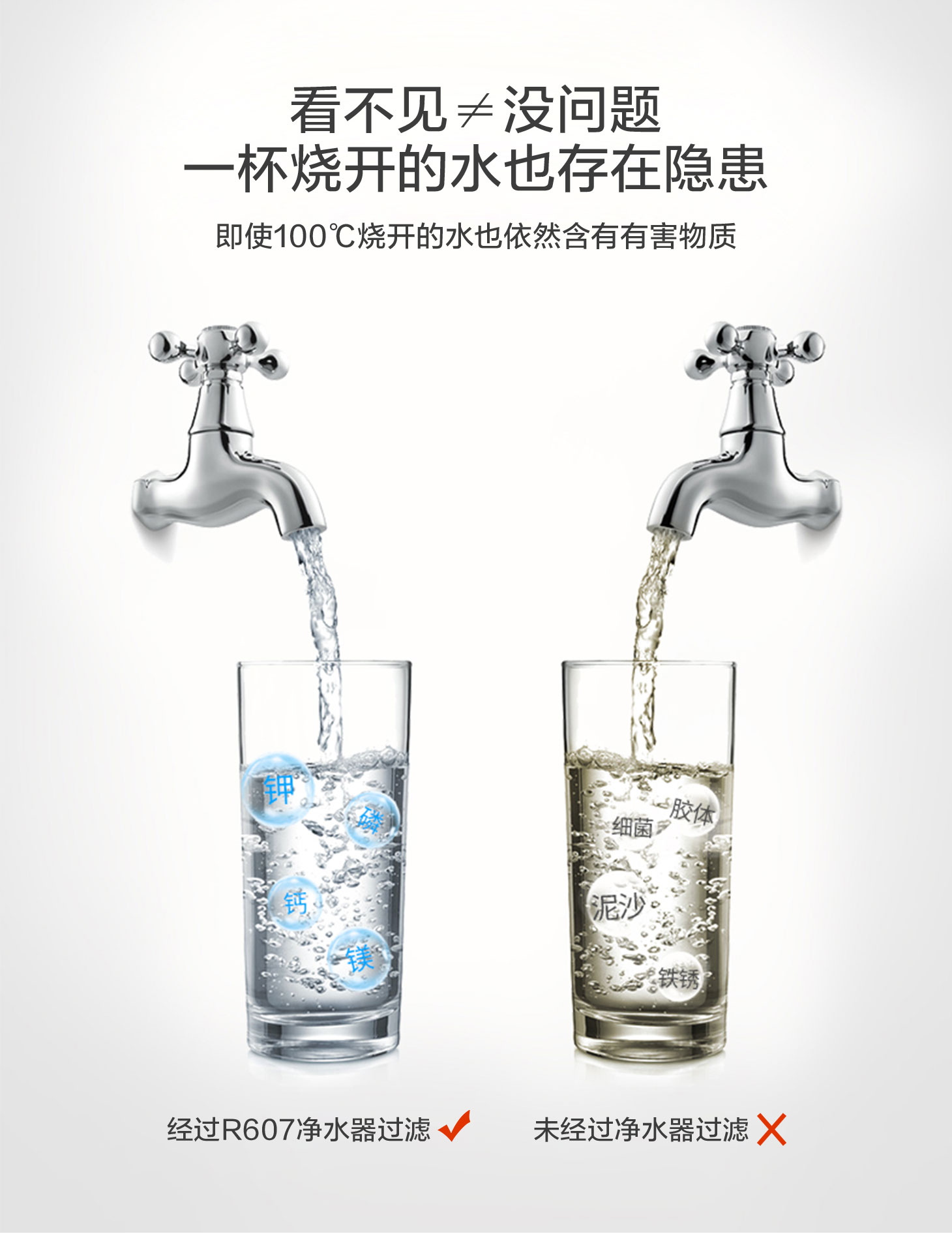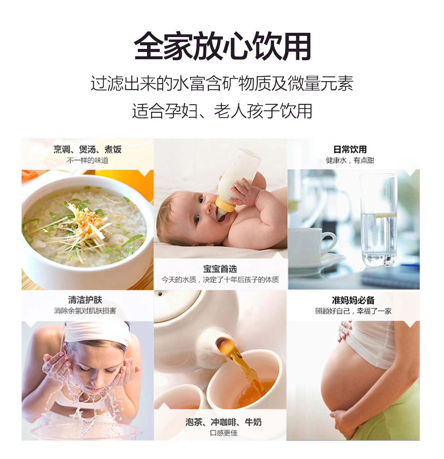 - 四重五級(jí)過濾,0.01微米超濾膜去除細(xì)菌和病毒。