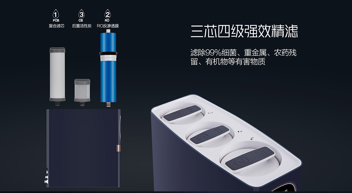 三芯四級強效精濾,濾除99%細菌重金屬