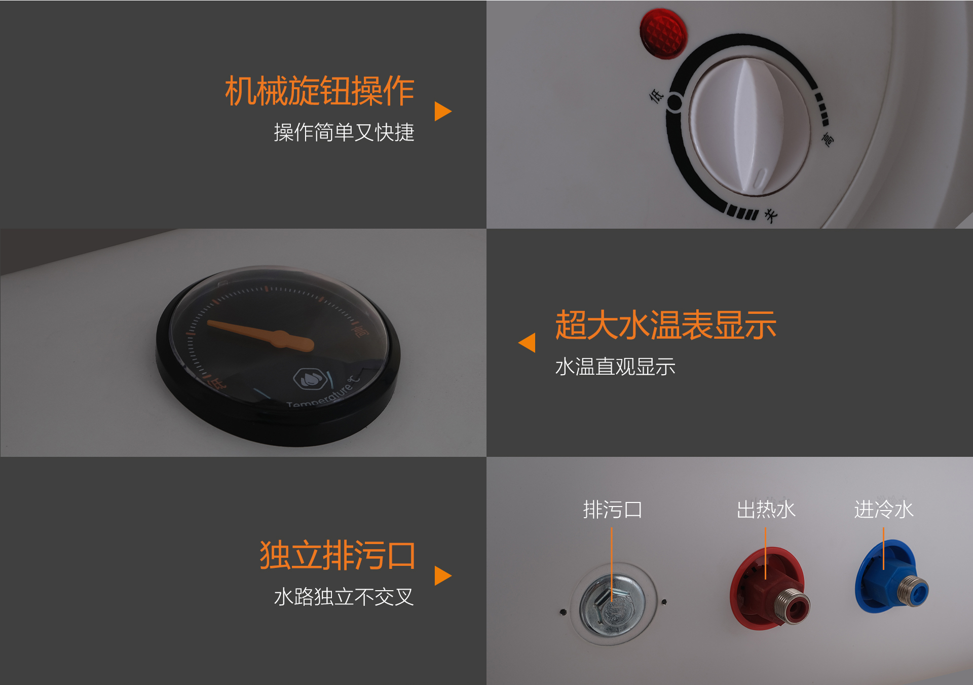 可視外置水溫表一目了然,設計簡潔直觀