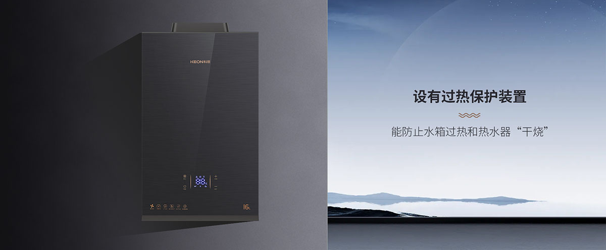 設有過熱保護裝置,能防⽌⽔箱過熱和熱⽔器“⼲燒”