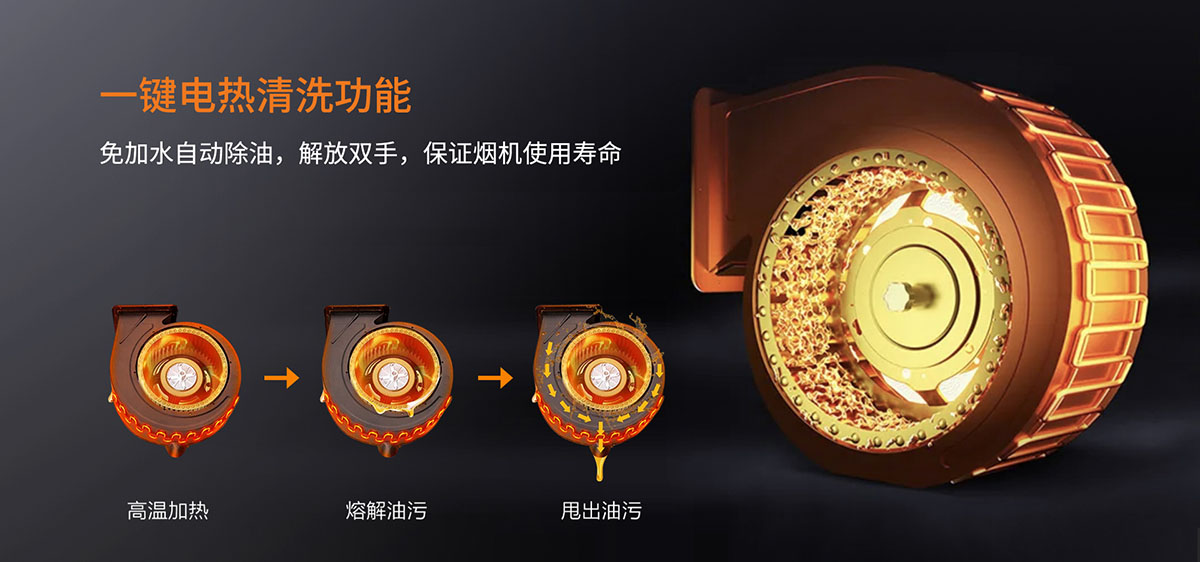 一鍵電熱清洗功能,解放雙手,保證煙機使用壽命