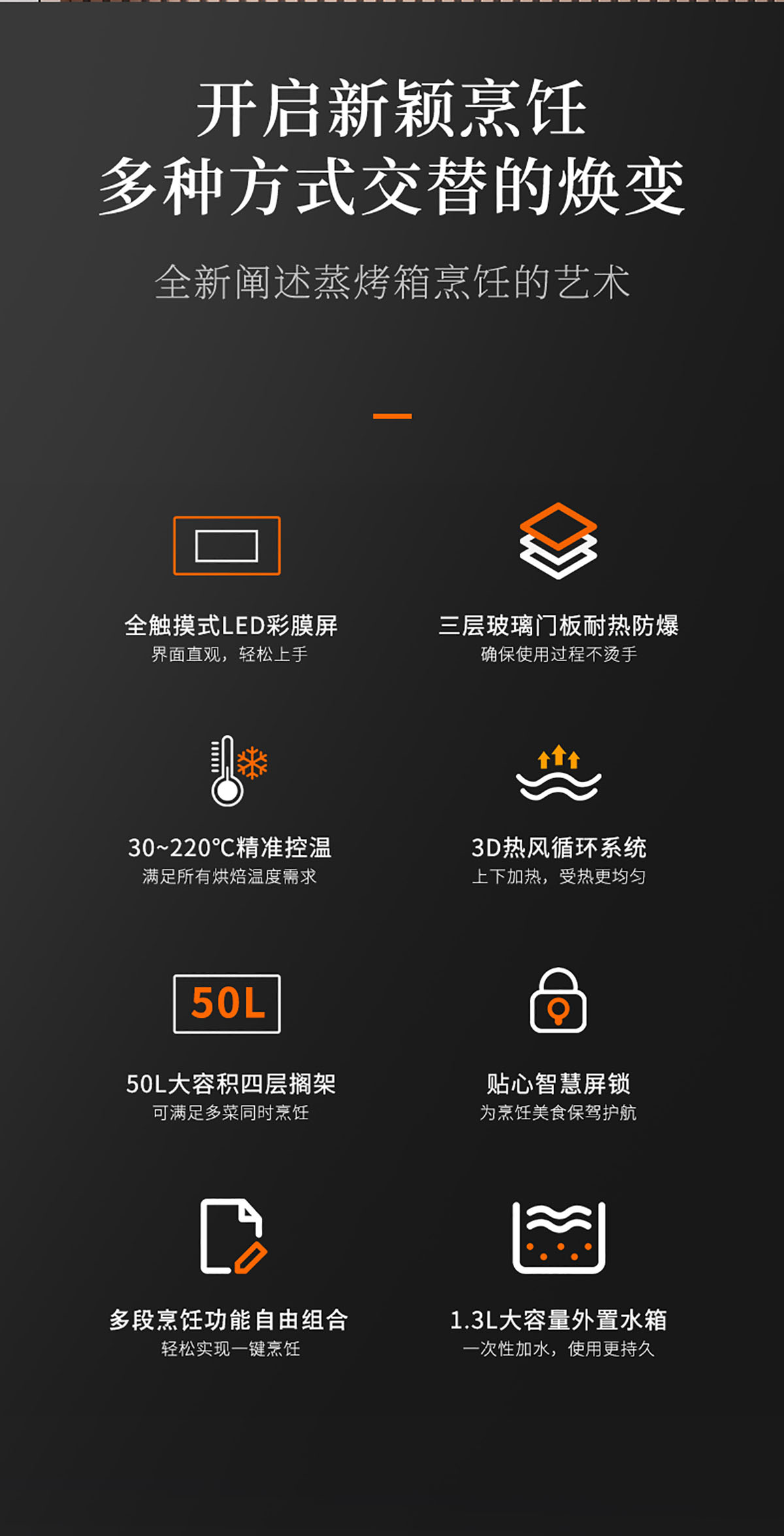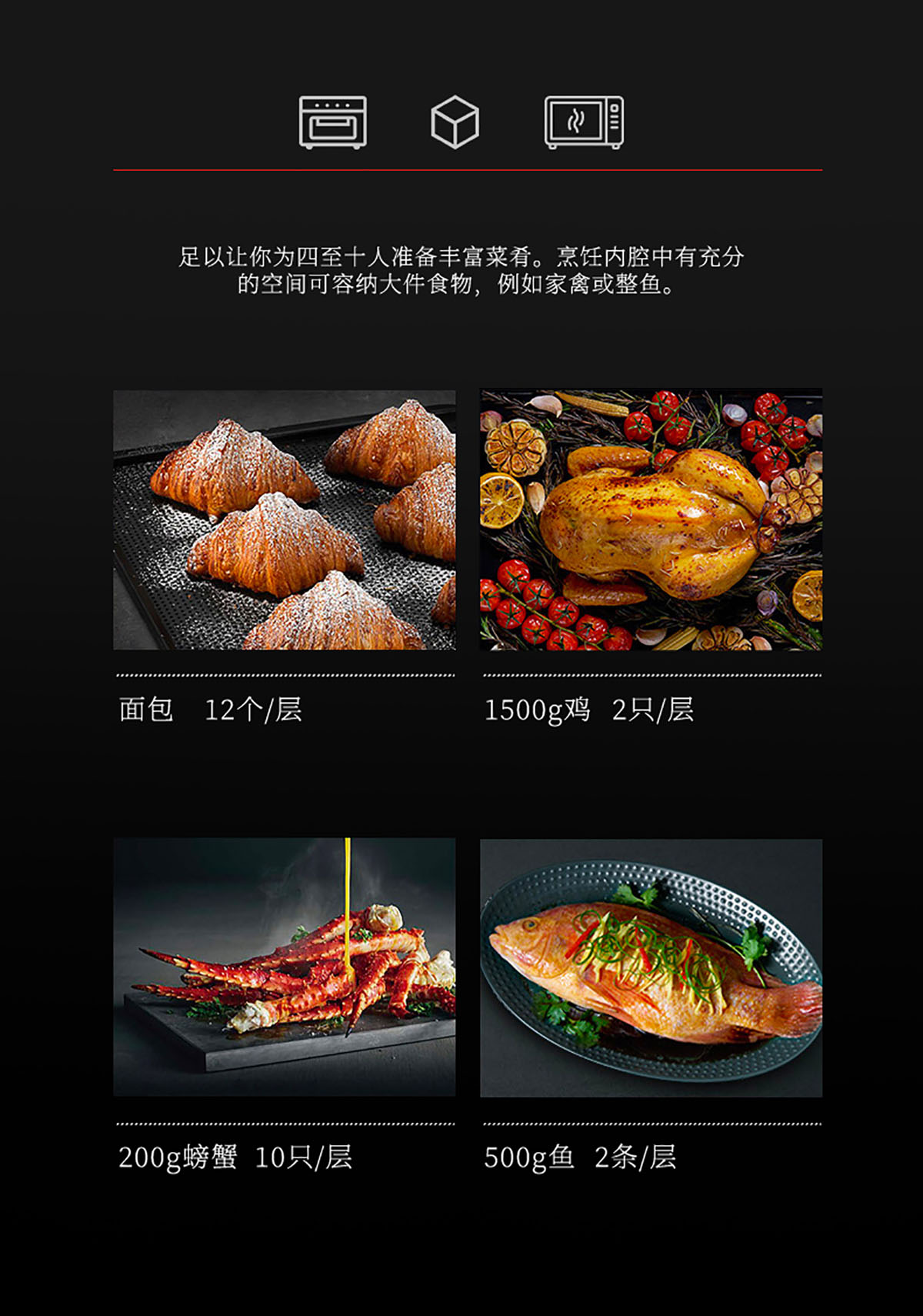 50L大容積四層擱架,可滿足多菜同時(shí)烹飪