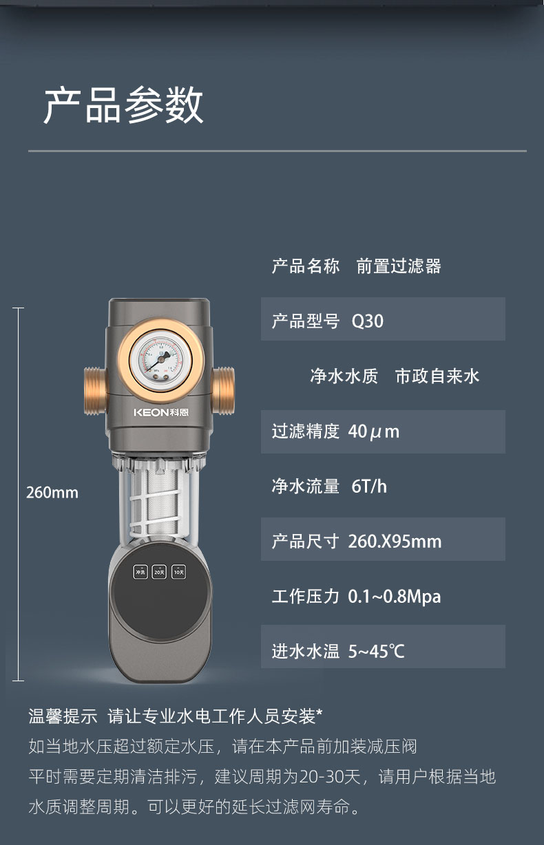 - 40μm過濾精度,精密不銹鋼濾網,提升水質