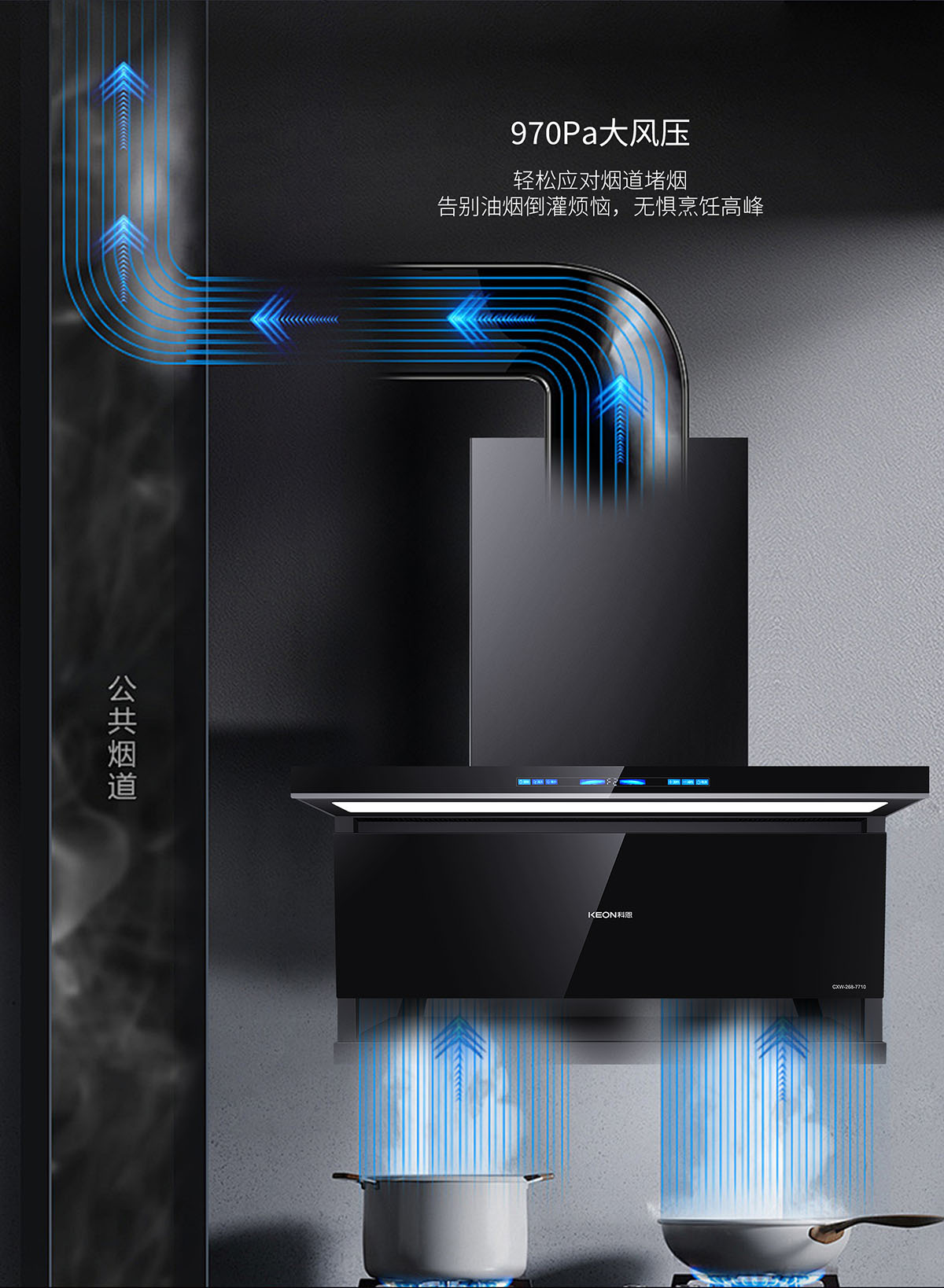 970Pa大風(fēng)壓,告別油煙倒灌煩惱