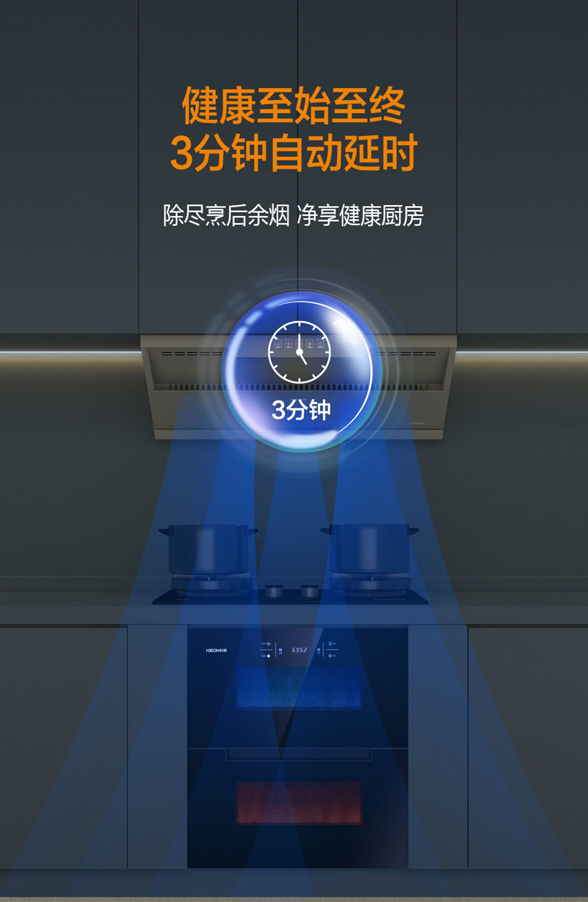 健康至始至終,3分鐘自動延時,除盡烹后余煙