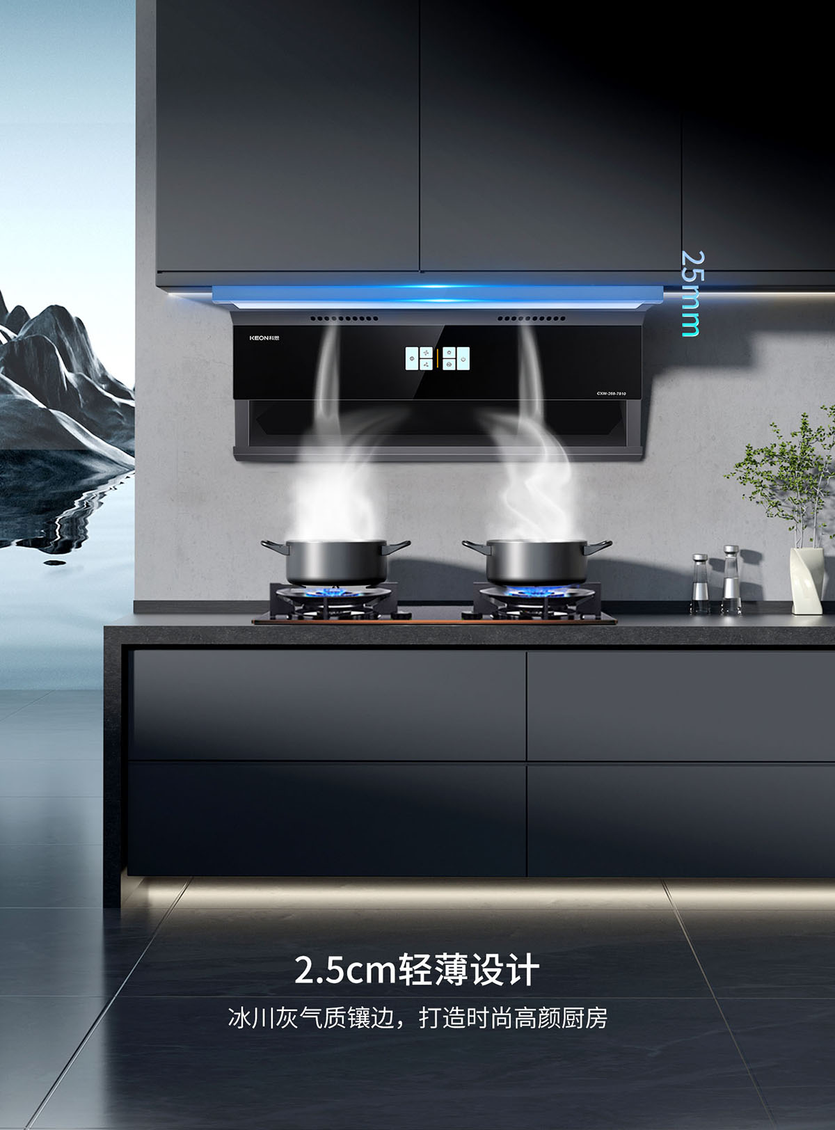 2.5cm輕薄設計,冰川灰氣質鑲邊,時尚高顏