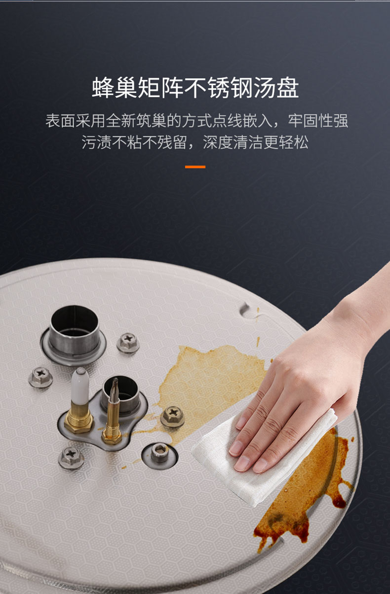 • 蜂巢矩陣不銹鋼湯盤,牢固易潔,打理更輕松