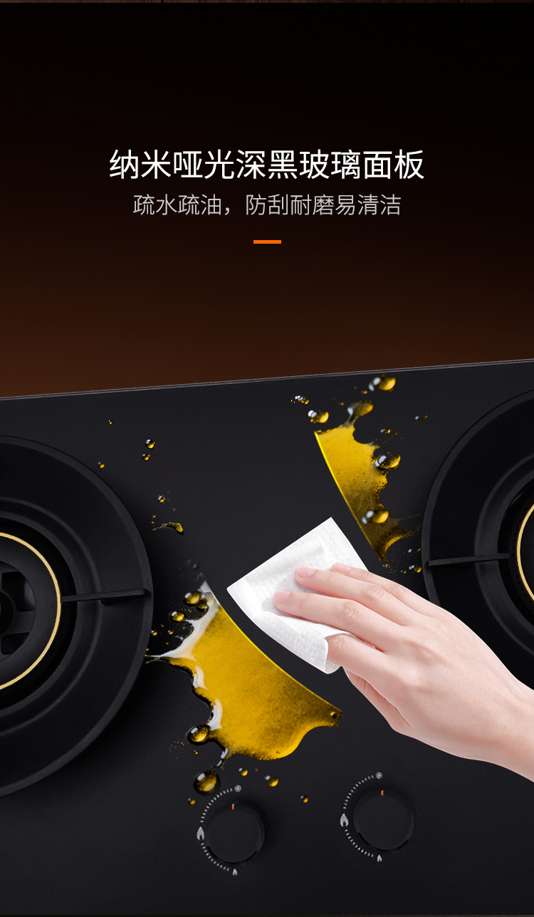 • 納米啞光黑玻璃面板,疏水疏油,防刮耐磨易清潔