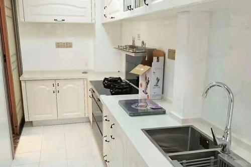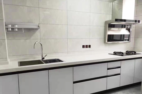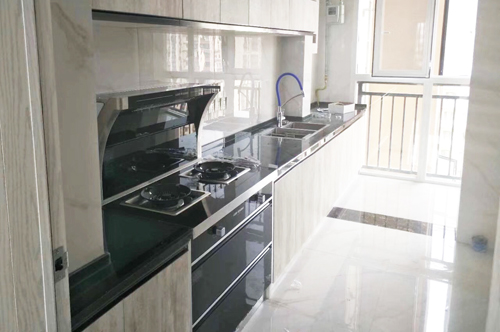 科恩廣東經(jīng)銷商提供的煙機、燃?xì)庠詈筒讳P鋼水槽廚房實景